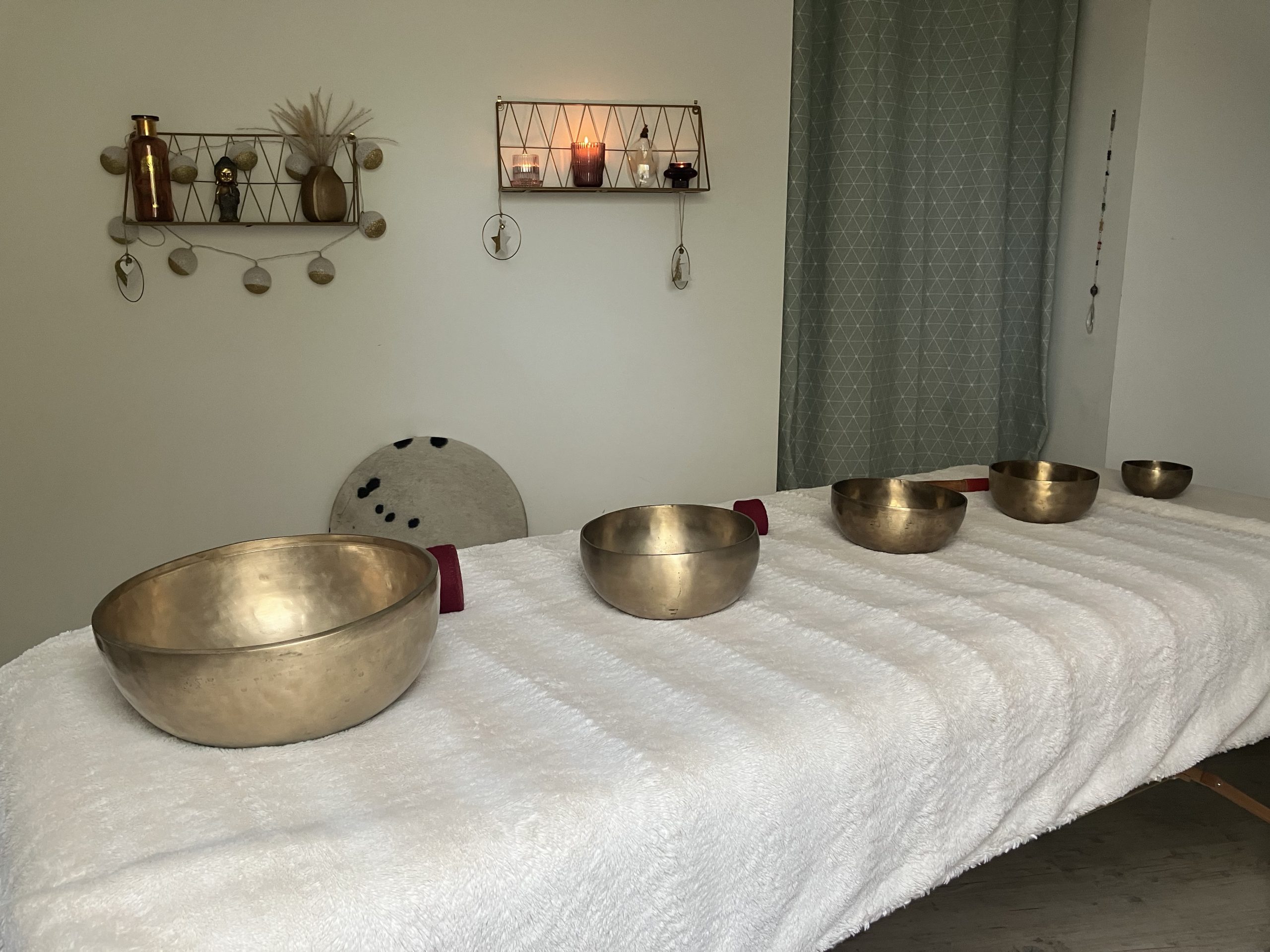 Offrez-vous un soin vibratoire aux bols tibétains, un voyage sonore où sons et vibrations se mêlent pour une relaxation et un lâcher-prise profond !